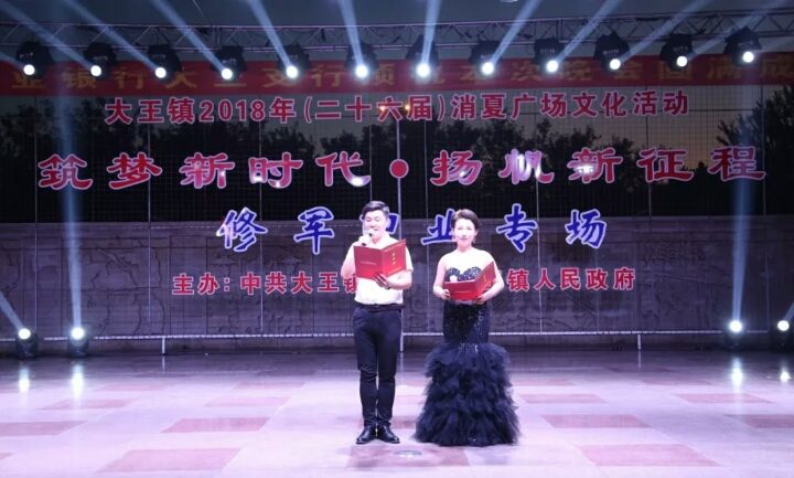 2018年7月31日晚,大王鎮(zhèn)文化廣場的大舞臺上流光溢彩,歌聲嘹亮。在中國人民解放軍建軍91周年到來之際,修軍印業(yè)為全鎮(zhèn)人民奉獻(xiàn)了一臺精彩的“追夢放歌?歡慶八一”文藝晚會,慶祝建軍節(jié)的到來。